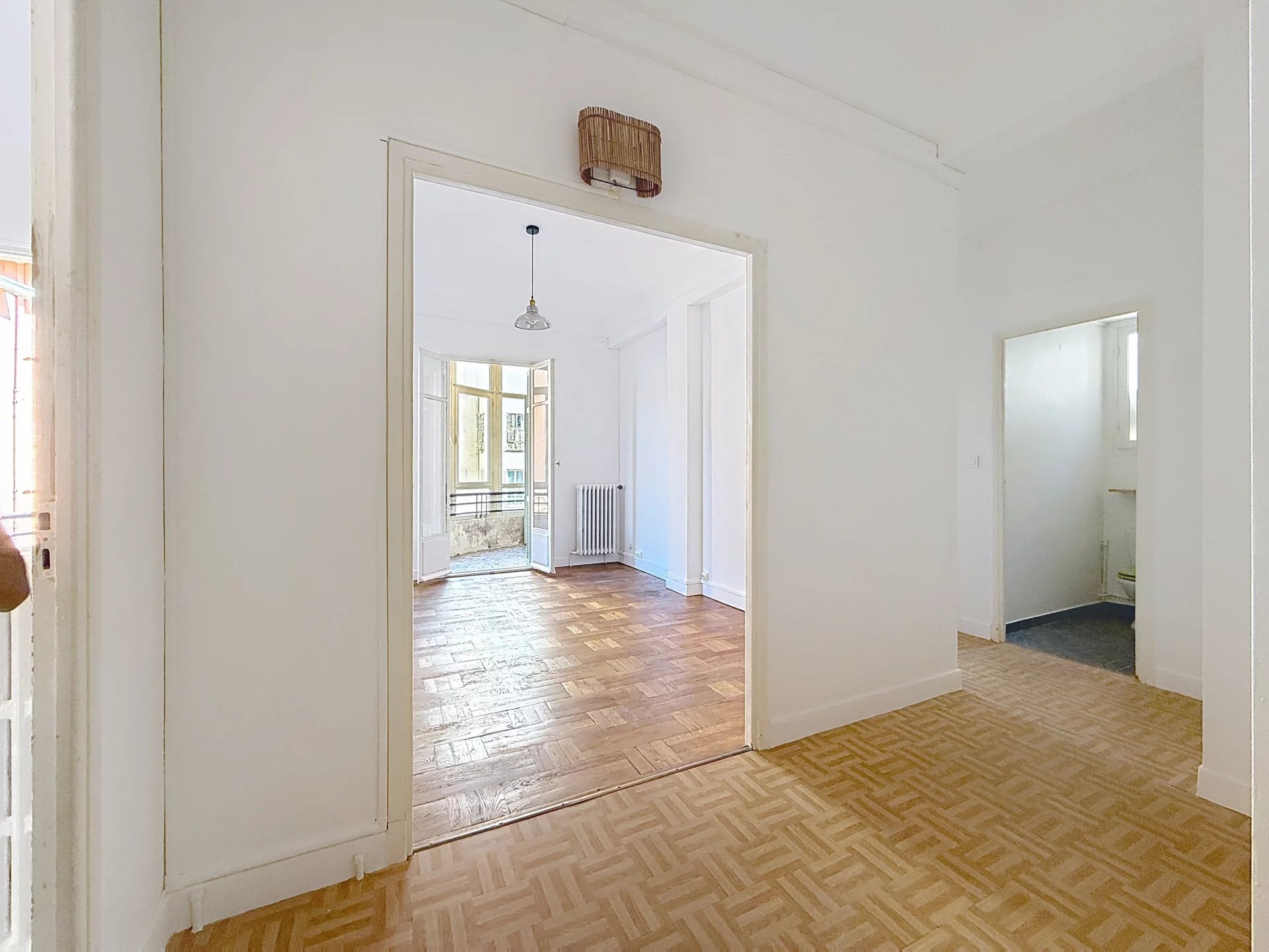 Situé au 3ème étage avec ascenseur d'un immeuble bien entretenu avec gardien, superbe appartement 2 pièces de 58m² loué vide, composé de : une entrée avec placard, une pièce à vivre ouverte sur balcon-véranda, une cuisine indépendante aménagée et semi-équipée (plaques, hotte, lavabo) ouverte sur balcon, une chambre ouverte sur balcon-véranda et une salle de bain avec WC.